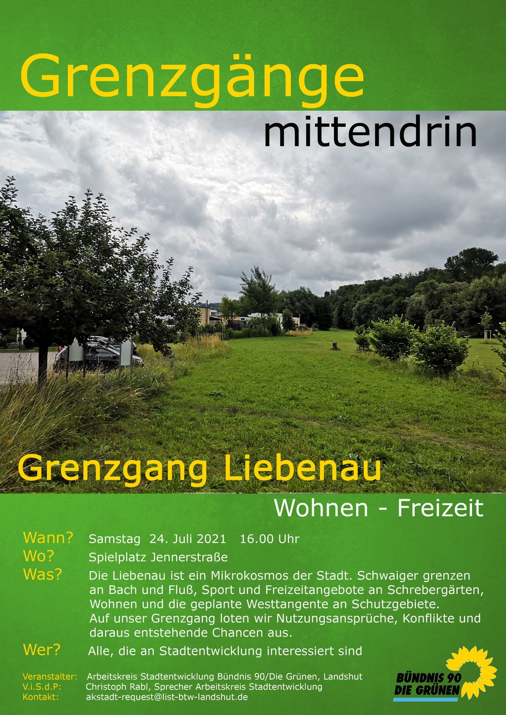 Die Liebenau ist ein Mikrokosmos der Stadt. Schwaiger grenzen an Bach und Fluß, Sport und Freizeitangebote an Schrebergärten, Wohnen und geplante Westtangente an Schutzgebiete. Unser Grenzgang lotet Nutzungsansprüche, Konflikte und daraus entstehende Chancen aus.