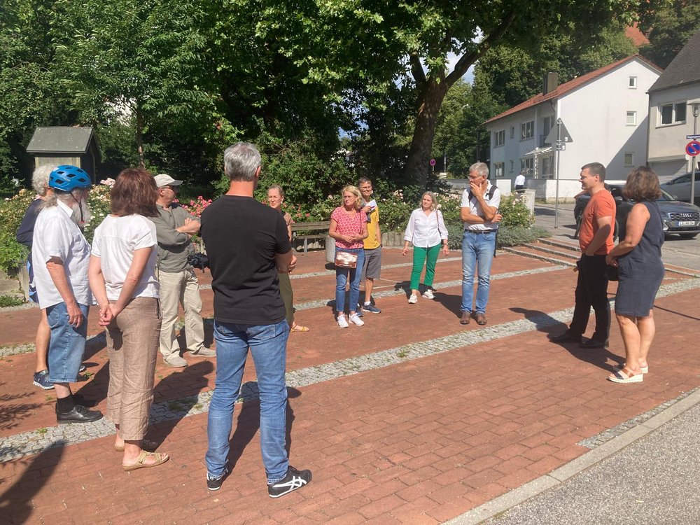 Auf dem Weg zurück zur Feuerwache über die Rödlstraße bei strahlendem Sonnenschein wünschte sich die Gruppe mehr schattenspendendes Grün im Viertel. Stadtrat Christoph Rabl erklärte „Bäume sind eine unverzichtbare Maßnahme gegen die Erhitzung der Städte aufgrund der Versiegelung“.