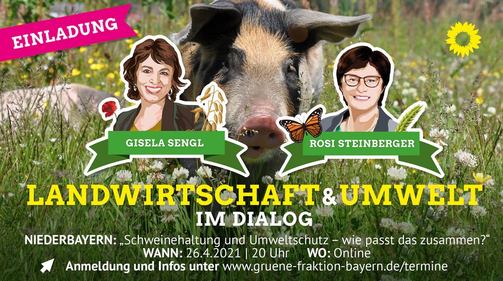 Am 26. April 2021 machen die beiden grünen Politikerinnen mit ihrer Tour unter dem Motto „Landwirtschaft und Umwelt im Dialog: Schweinehaltung und Umweltschutz – Wie passt das zusammen?“ Halt in Niederbayern und diskutieren darüber in einer öffentlichen Online-Diskussionsveranstaltung.