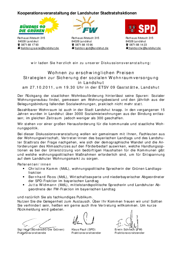 der Wohnungswirtschaft, Vertreter/innen des bayerischen Landtags und des Landshuter