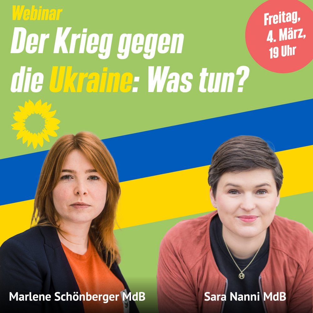 Zu diesen und weiteren Fragen lädt die grüne Bundestagsabgeordnete Marlene Schönberger ihre Fraktionskollegin Sara Nanni, Mitglied des Verteidigungsausschusses und sicherheitspolitische Sprecherin der grünen Bundestagsfraktion, zu einer online-Diskussion am 4. März um 19 Uhr ein. Um Anmeldung unter marlene.schoenberger@bundestag.de wird gebeten.