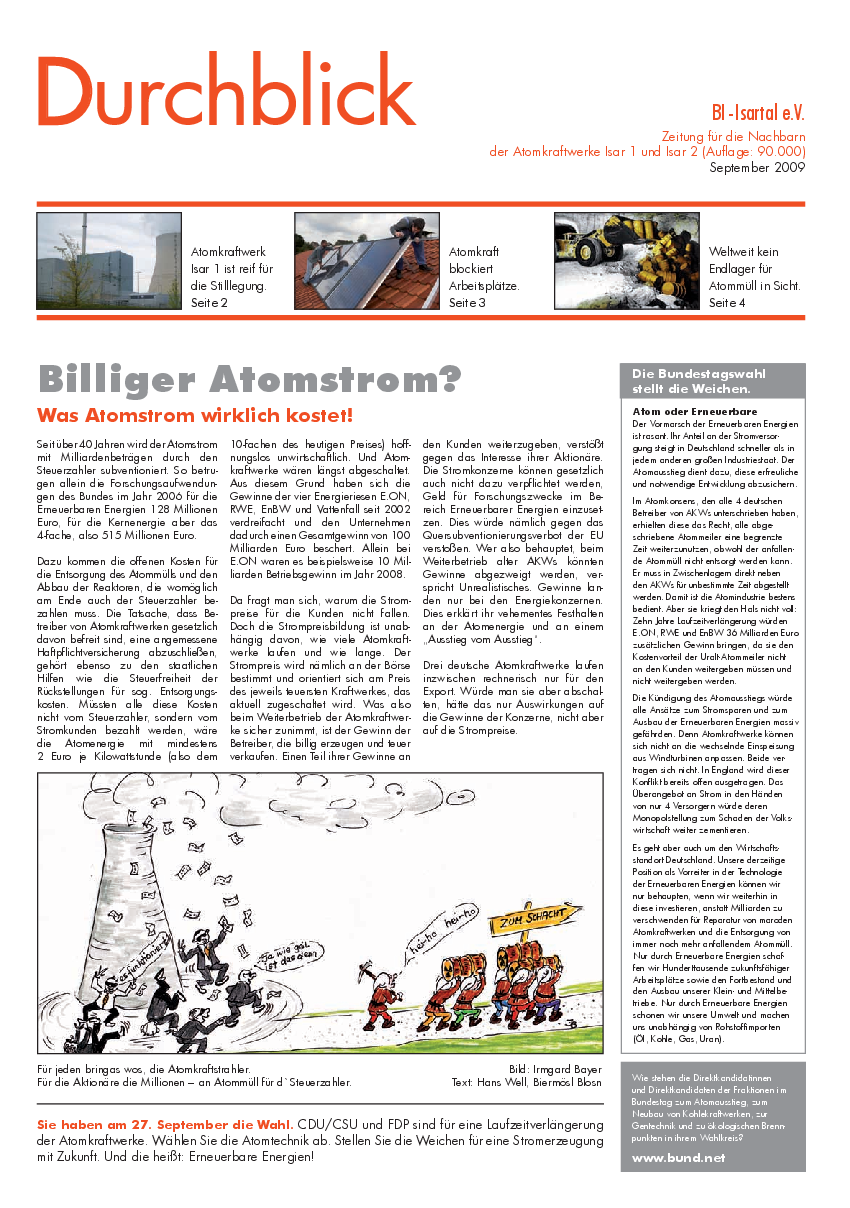 Die Zeitung für die Nachbarn der Atomkraftwerke Isar 1 und Isar 2 gibt es nun endlich zum Herunterladen und Nachlesen in der Rubrik "Themen / Atom ..."
