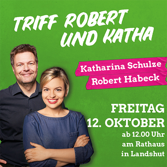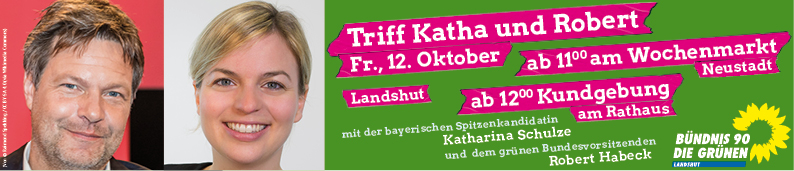 Zum Wahlkampfendspurt der Grünen kommen Robert Habeck, Bundesvorsitzender der Grünen und die bayerische Spitzenkandidatin Katharina Schulze am Freitag den 12. Oktober nach Landshut.