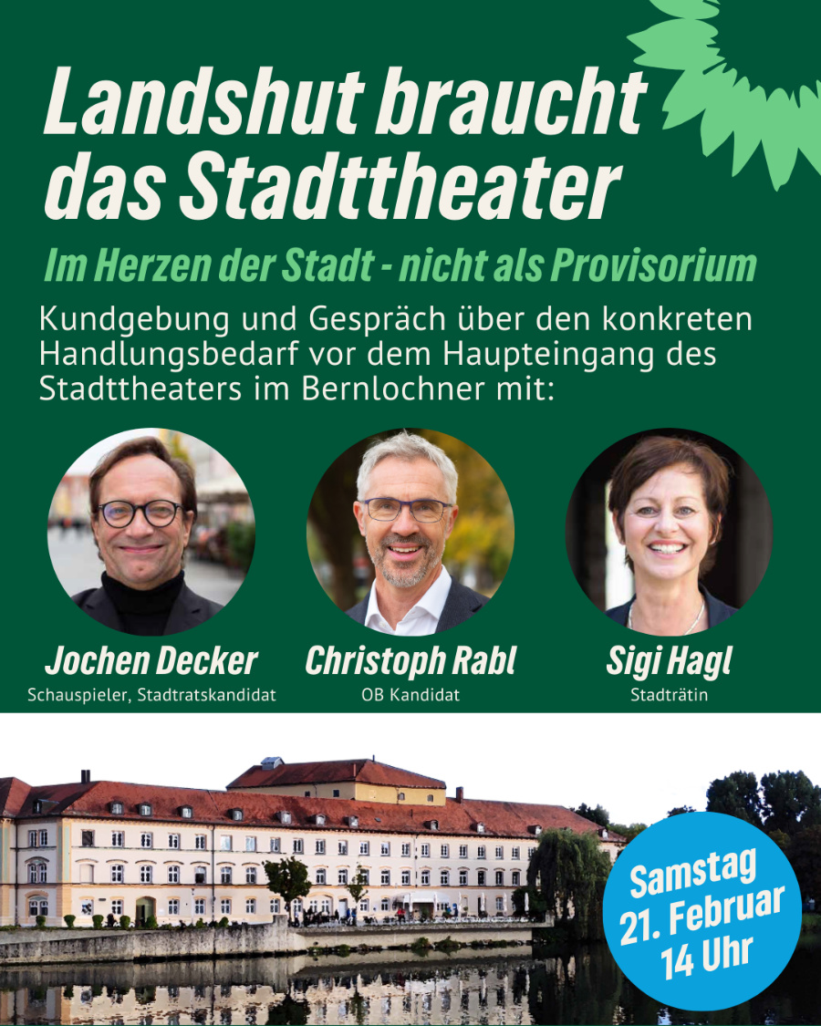 Kundgebung und Gespräch über den konkreten Handlungsbedarf vor dem Haupteingang des Stadttheaters im Bernlochner mit Jochen Decker, Schauspieler und Stadtratskandidat, Christoph Rabl, OB-Kandidat und Stadtrat und Sigi Hagl, Stadträtin.
