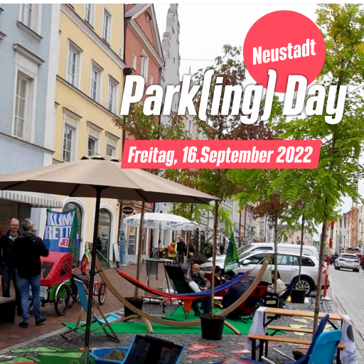 Was könnte man mit den vielen Parkplätzen nicht alles anfangen, wenn nicht überall Autos rumstehen würden. Am diesjährigen Park(ing) Day verwandeln wir auch in Landshut wieder zusammen mit anderen Organisationen Parkplätze in PARKs. Mitmach- und Entspannungs-Oasen laden in der Neustadt zum Ausruhen ein und zeigen, wie öffentlicher Raum besser genutzt werden kann. Mehr Platz für die Bewohner*innen unserer Stadt, mehr Platz für Grün. Am weltweiten Aktionstag PARK(ing)-DAY holen wir den Raum auf öffentlichen Parkplätzen zurück.